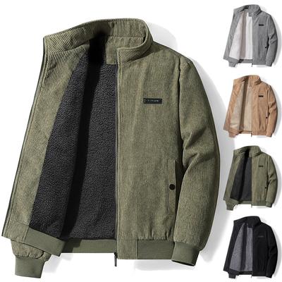 Men's Winter Corduroy Jacket with Velvet, Lamb Wool, and Stand-Up Collar - Trendy and Thick Fashion for Casual Wear