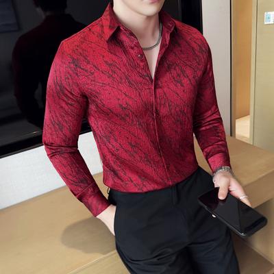 Men's Casual Shirts Korean Style Print Long Sleeve Mens Dress Shirts Slim Fit Business Tuxedo Blouses