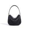 This bag has a stylish, hobo - style silhouette crafted from top - grain cowhide leather. It features a soft, pebbled texture, a spacious main compartment, and a sleek, curved shape. The elegant and practical look makes it a versatile accessory.