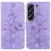 For TECNO Camon 40 4G Stand Case Lily Flower Imprint Leather Phone Cover with Wrist Strap