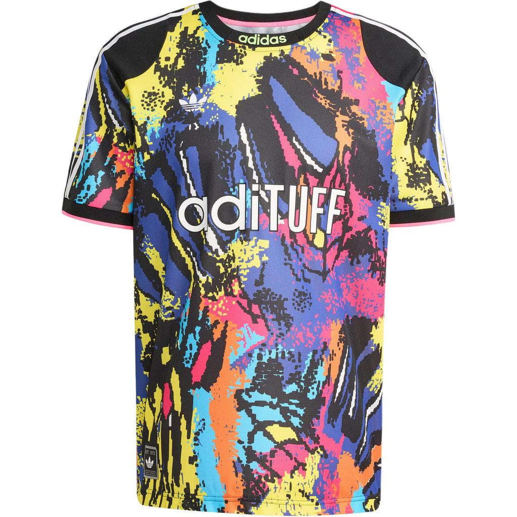 Adidas Originals Archive SS25 AOP Jersey Comfortable Round Neck Sports Short Sleeve Football Shirt Men Tops Black Lemon-Yellow Pink KD4800