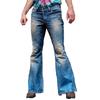 European Punk Style Blue High Waist Embroidered Retro Men's Denim Flare Pants Stylish Flared Jeans For Men Unique Denim Bottoms Trendy Casual Wear