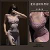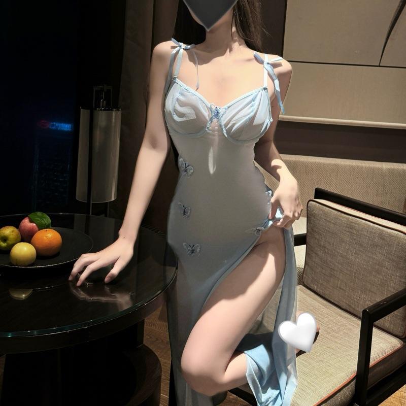 Sexy and Sexy Perspective Mesh Yarn Seduces Halter Pure Desire Wind High Split Suspender Long Dress
