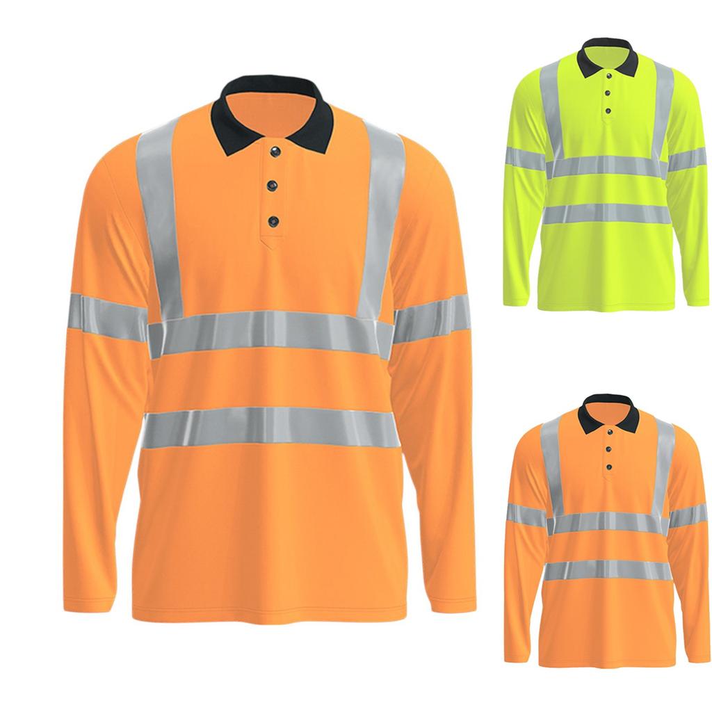 Men's Lapel Quick Dry Reflective Outdoor Construction Environmental Safety Construction Labor Reflective Work Shirt