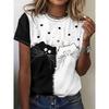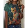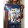 Summer Round Neck 3D Cat Print Top Fashionable Casual Short Sleeved Women's T-shirts