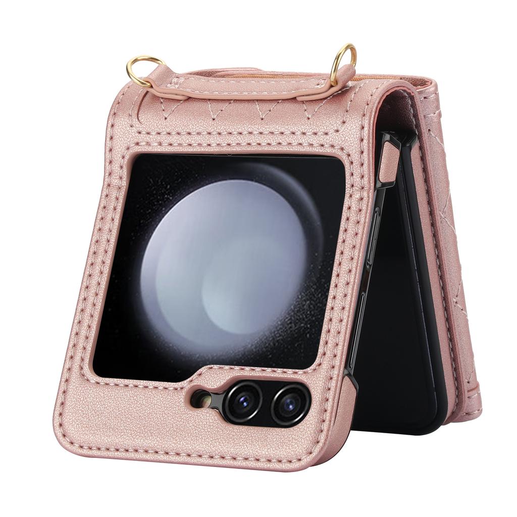 For Samsung Galaxy Z Flip5 5G Crossbody Case Card Holders PU Leather+PC Phone Cover RFID Blocking
