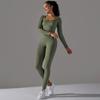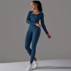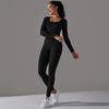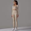 Seamless Knitted Long Sleeved Sports And Fitness Pants, Quick Drying Jacquard Breathable Hip Lifting Running Yoga Suit Set