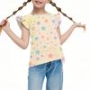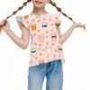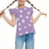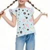 Children's Casual Short-Sleeved Pleated Cute Printed Round-Neck Solid-Color Top