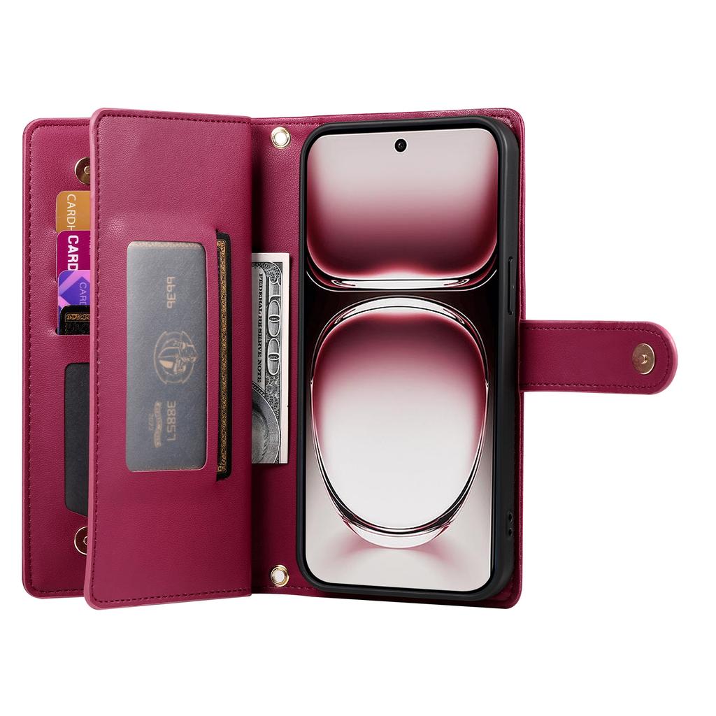 DF-011 For Oppo Reno12 5G (Global) Case Zipper Pocket Wallet Leather Phone Cover with Straps