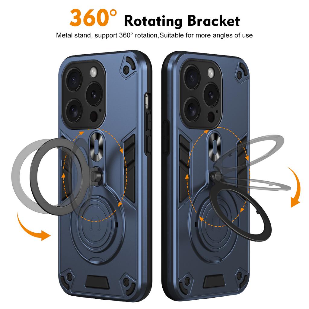 For iPhone 15 Pro Case Rotatable Kickstand PC+TPU Drop Protection Phone Cover