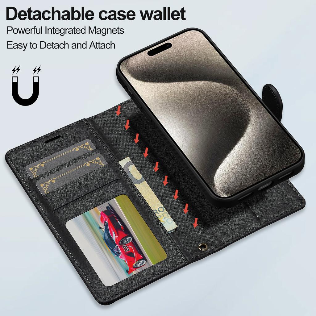 LC.IMEEKE L2 Series for iPhone 15 Case PU Leather Wallet Detachable Magnetic Phone Cover