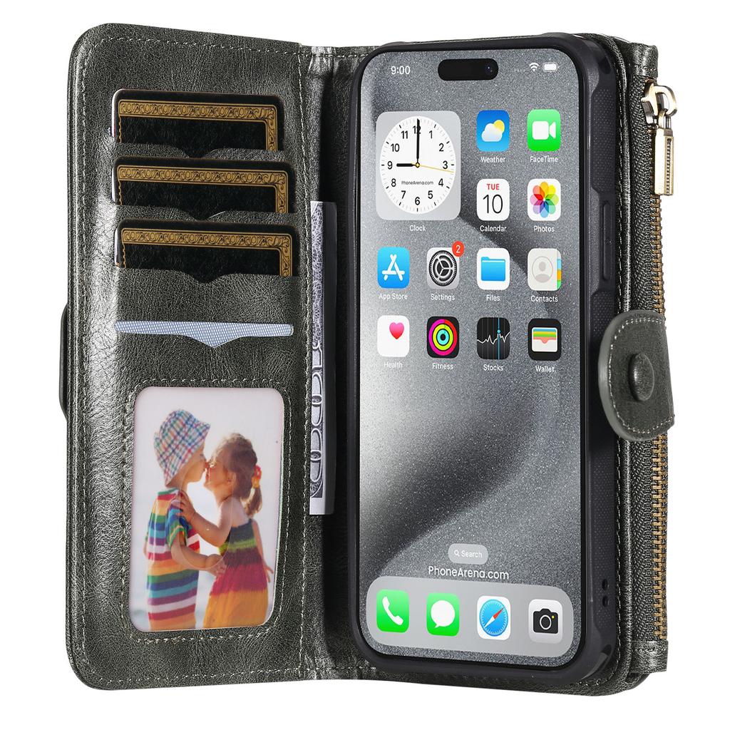 For iPhone 16 Pro Max Magnetic Case Detachable PU Leather Zipper Wallet Cover
