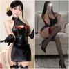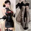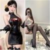 Dark Miniskirt Butterfly Chain Imitation Leather Side Split Elastic Sexy Neck Hollow Chest Woman