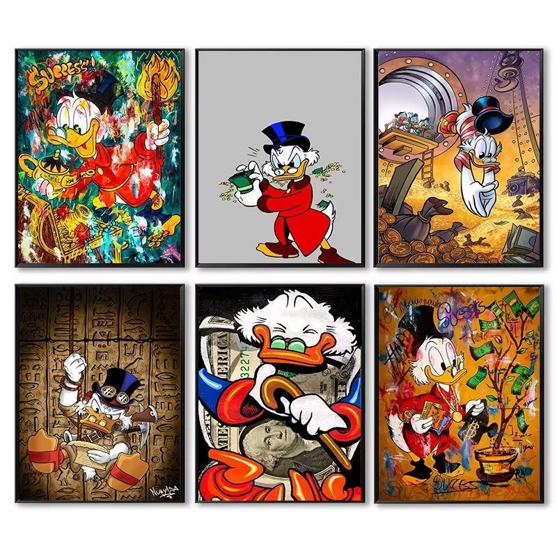 Donald Duck Diamond Painting Scrooge Mcduck Money Cartoon Graffiti Wall Poster Prints Living Room Home Pictures Decor
