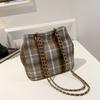 Retro Plaid Large-capacity Chain Shoulder Bag 2025 Autumn New Women's Armpit Bag Fashionable Bucket Bag