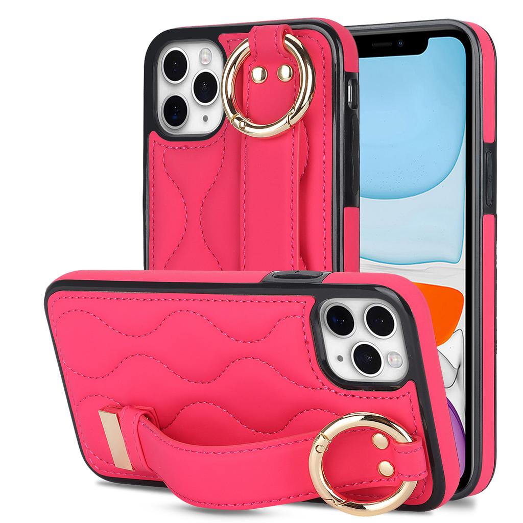 For iPhone 11 Pro Max Case Wave Pattern Wristband Kickstand PU+TPU Phone Cover