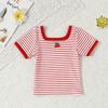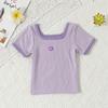 2024 Fashionable Baby Girl Square Neck Summer T-shirt - Short Sleeve Toddler Top