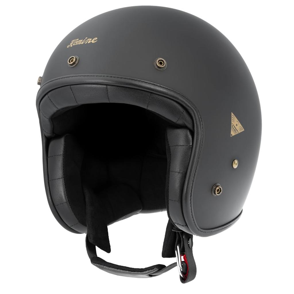 KOMINE Motorcycle Heritage Leather Jet Helmet Solid Mat Black XL HK-195