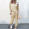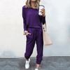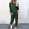 Women's Fashion Casual Spring Autumn Solid Color Print Long Sleeve O-Neck Trousers Pants Suits