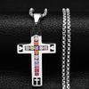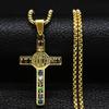 Catholic Jesus Cross Stainless Steel Necklace Saint Benedict Crystal Virgin Mary Pendant Crucifix Male Necklaces Jewelry Cruz