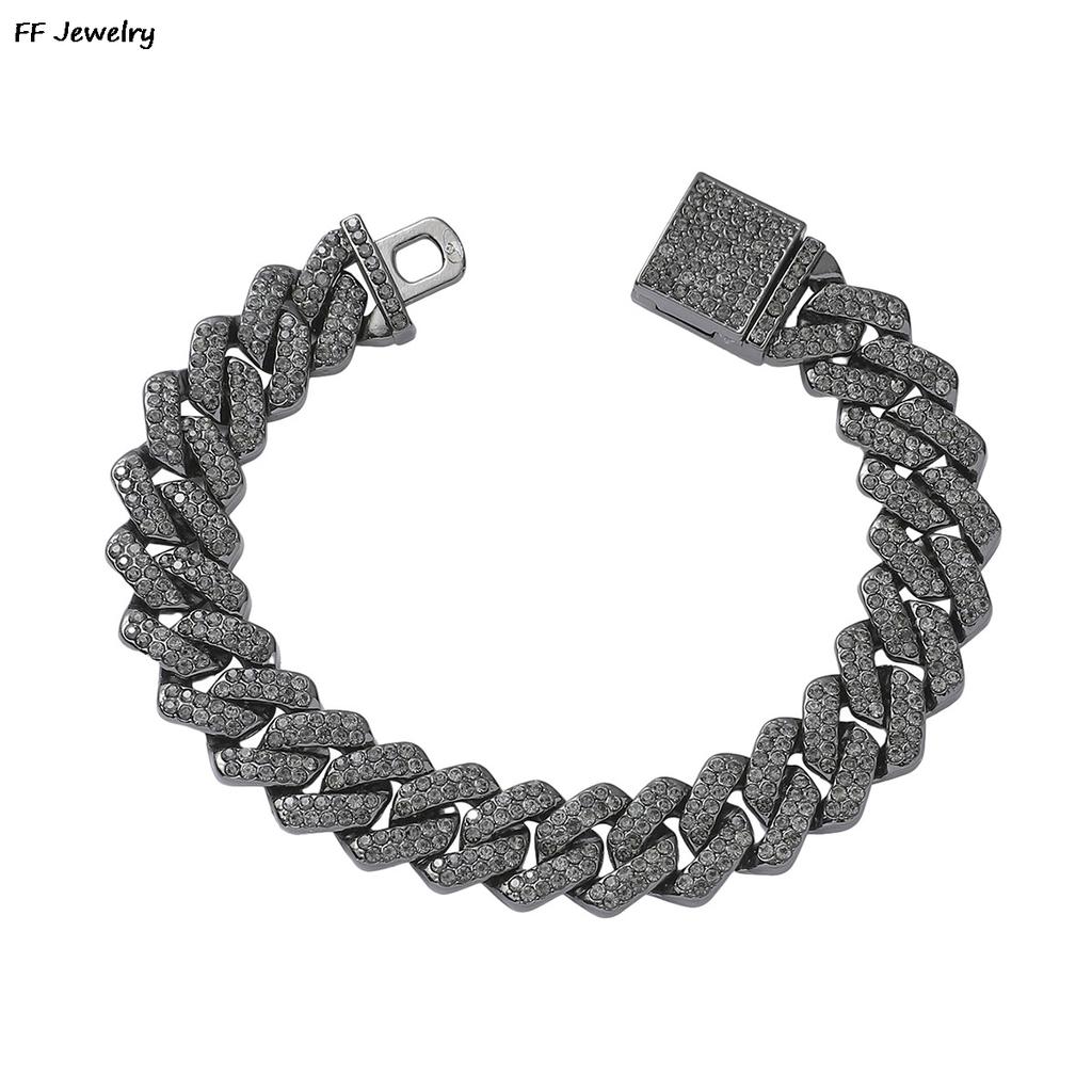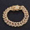 14mm Black Hip Hop Shiny Cuban Link Chain Bracelets Women Men Gold Color Rhinestone Iced Out Chain Bracelets Punk Men Jewelry