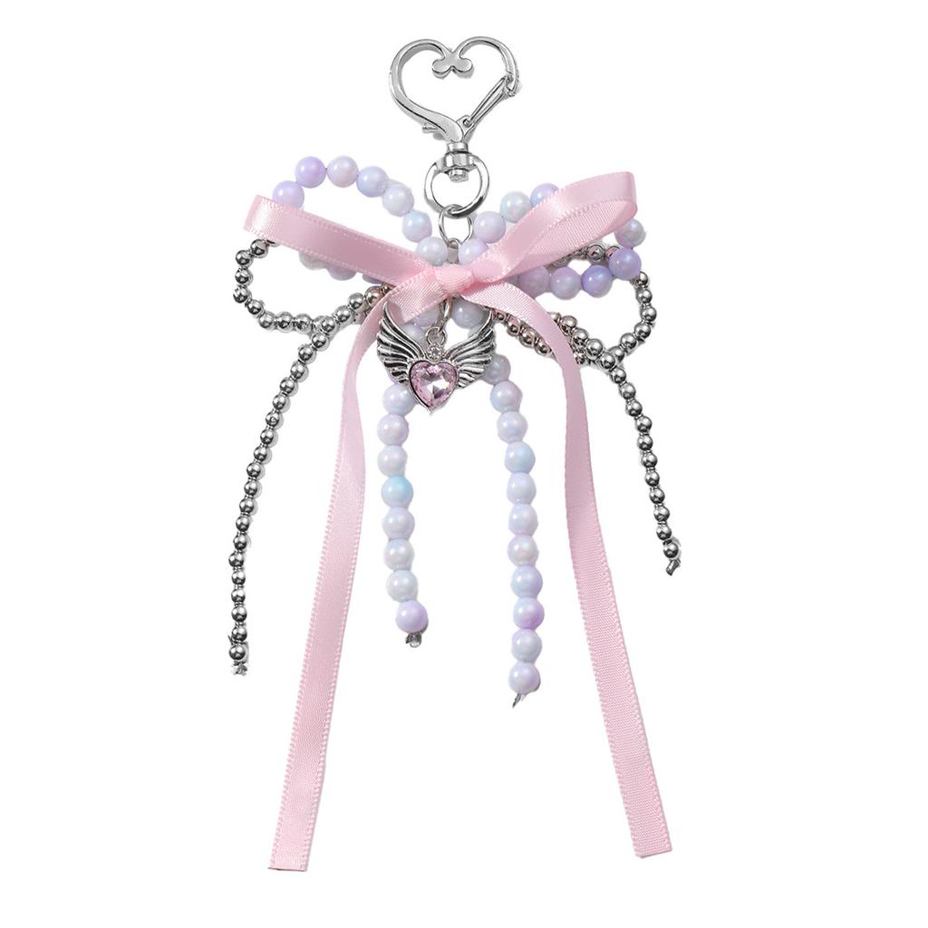This cute aesthetic bag keychain charm is designed with an exquisite bowknot, and heart pendant, making it a perfect accessory for women and girls who love kawaii aesthetics.