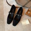 Sheepskin Version~ Textured Leather Square Head Thick Heel Soft Surface Small Leather Shoes High Heel Single Shoes Women's Shoes Autumn Models