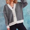 Autumn and Winter Casual Contrasting Diagonal Stripe Single Breasted V-neck Long Sleeved Sweater Cardigan Jacket for Women 3602