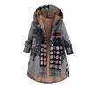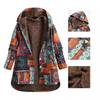 Women Casual Outwear Winter Warm Retro Printed Pockets Zipper Hooded Thicker Coat Plus Size