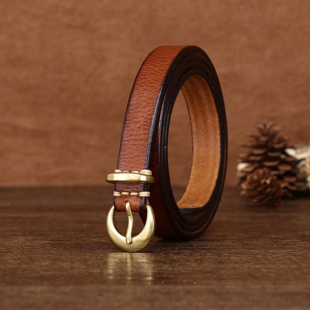 1.8Cm Women'S Belt First Layer Cowhide Trendy Retro Leather Belt Personalized Fashion Narrow Cross-Border Products