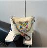 Embroidery Zipper Shoulder Bag Women's Niche Design Small Fresh Fashion Large Capacity Portable Storage Bag Toilet Bag