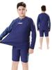 This boys' two-piece swimsuit set offers optimal sun protection for big kids while they enjoy their time in the water. Crafted from high-quality polyester, the fabric ensures durability and comfort, allowing for a full range of movement during swimming and beach activities. Designed with both style and functionality in mind, this swimwear set provides excellent UV protection, making it a great choice for long days under the sun. Perfect for active kids who love water adventures, this swimsuit set combines safety, performance, and style.