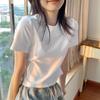High and Thin White Short-sleeved T-shirt Women's Slim-fitting Short Round Neck Bottoming Shirt Versatile Casual Body Shirt Pure Cotton Top
