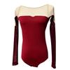 Falling Leaves Light Dance Mesh Splice Costume: Classical Black Camellia Body Shaping Suit
