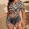 Dive into style with this plus-size leopard print tassel bikini, designed for the confident and bold woman. This sexy European and American swimwear piece features a striking leopard pattern that exudes a wild and fashionable look. Crafted entirely from high-quality polyester, it ensures comfort and durability for all your beach or poolside adventures. The tassel accents add a playful and trendy touch to your swimwear collection, making it a must-have for your summer wardrobe. Enjoy making waves with this stunning and eye-catching bikini.