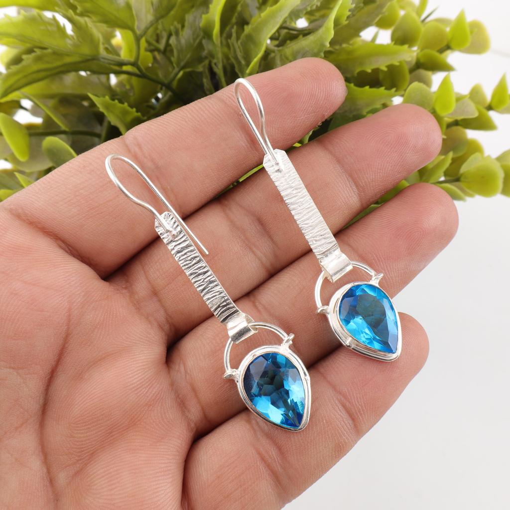 Swiss Blue Topaz Earrings Gemstone, 925 Solid Sterling Silver Earrings Jewelry, Handmade Earrings, Silver Jewelry For Gift