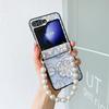 For Samsung Galaxy Z Flip5 5G Hinge Design Lacquered Flower Pattern PU Leather+PC Case with Pearl Chain