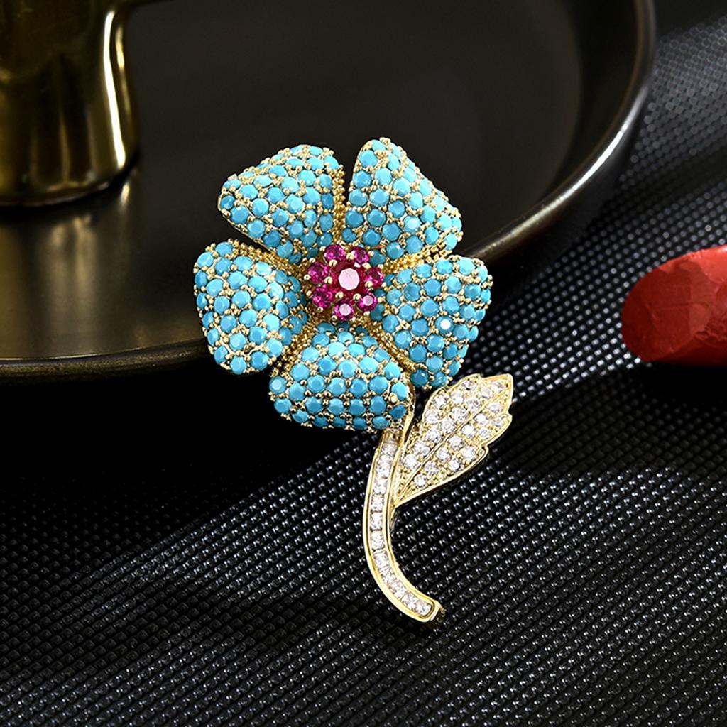 Women's Light Luxury Design Flower Inlaid Zircon Geometric Brooch Fashionable And Versatile Niche Design Brooch