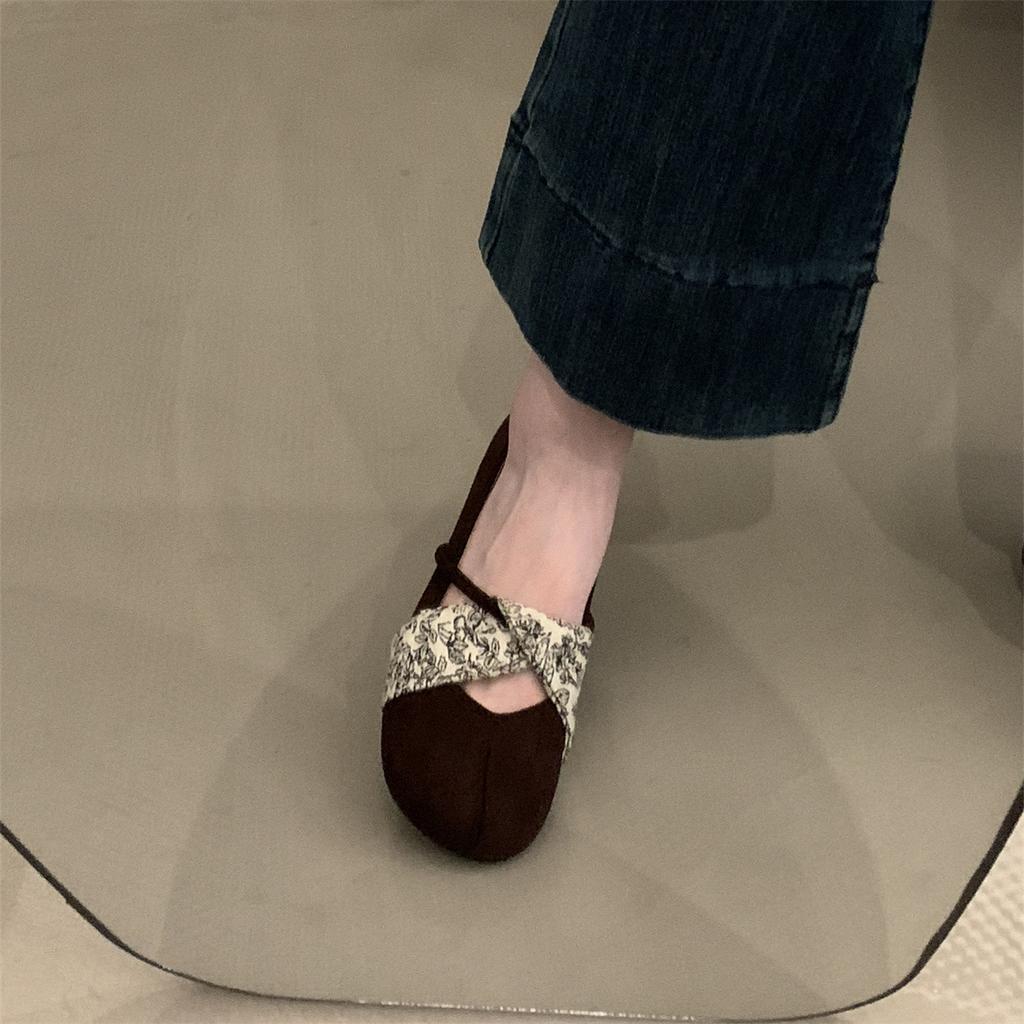 Flat-bottomed Retro Mary Jane Shoes Women's Shoes Spring and Autumn Suede Light Mouth One-word Belt with Skirt Single Shoes