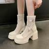 Pink Thick Heel High Heel Mesh Breathable Cool Boots Children's Martin Boots Thick Sole Heightening Small Single Boots