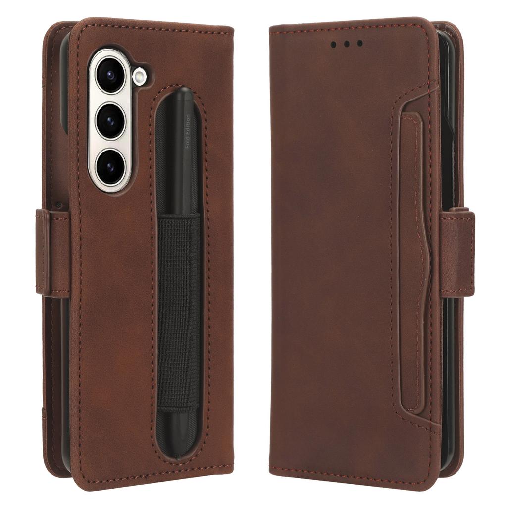 For Samsung Galaxy Z Fold5 5G Multiple Card Slot Phone Case PU Leather+PC Wallet Stand Cover with Pen Holder