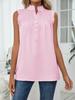 Summer Women's Vest Sleeveless High Neck Button-frilly Loose Casual Top