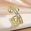 Zircon Double Crossed Shape Rings For Women Gold Plated Stainless Steel Cross Ring Luxury Wedding Couple Rings Aesthetic Jewerly