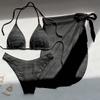 Elevate your beachwear collection with this chic three-piece bikini set designed for women. Featuring a modern solid color pattern, this set brings elegance and style to your swimwear ensemble. Crafted from high-quality polyester, it offers both comfort and durability. The bikini includes a flattering lace-up design, making it a perfect choice for those looking to make a confident statement by the pool or at the beach. Enjoy the blend of fashion-forward design and practicality with this stunning swimwear set.