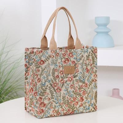 Aesthetic Floral Print Lunch Bag Large Capacity Lunch Handbag For School Work Travel Picnic Portable Mother'S Bag