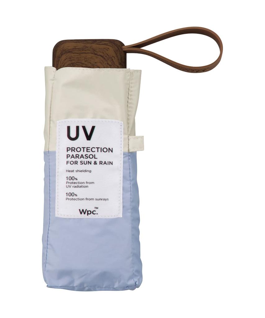 Wpc. Shading Patchwork Tiny Umbrella – Sax Blue, 47 Cm, 100% UV Cut, Fully Light-Blocking, Compact Foldable Sun/Rain Umbrella for Women (801-6423)