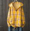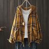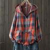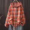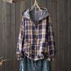 Women's Hooded Double-layer Cotton Yarn Plaid Shirt Literary Retro Casual Cardigan Top Jacket