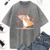 Collect Love Cartoon Cat Print Washed Vintage T-shirt Men's and Women's Summer Casual Clothes Fashion Casual T-shirt