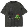 Men's and Women's Retro Water-wash T-shirt Street Retro Punk T-shirt Harajuku Casual Water-wash Distressed T-shirt