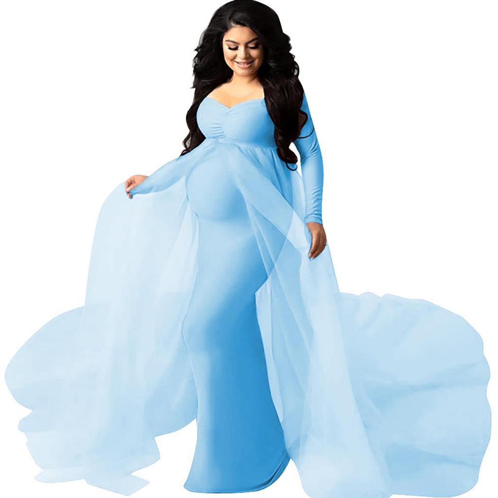 Embrace comfort and style with this elegant maxi dress, perfect for expecting mothers. Featuring a round neck and long sleeves, this maternity dress showcases a sophisticated mesh patchwork design, adding a touch of modern flair. Crafted from premium mesh material, it offers breathable comfort and a lightweight feel, making it ideal for the upcoming spring and summer seasons. Its flowing silhouette elegantly drapes, providing both a flattering fit and ease of movement for your growing bump.